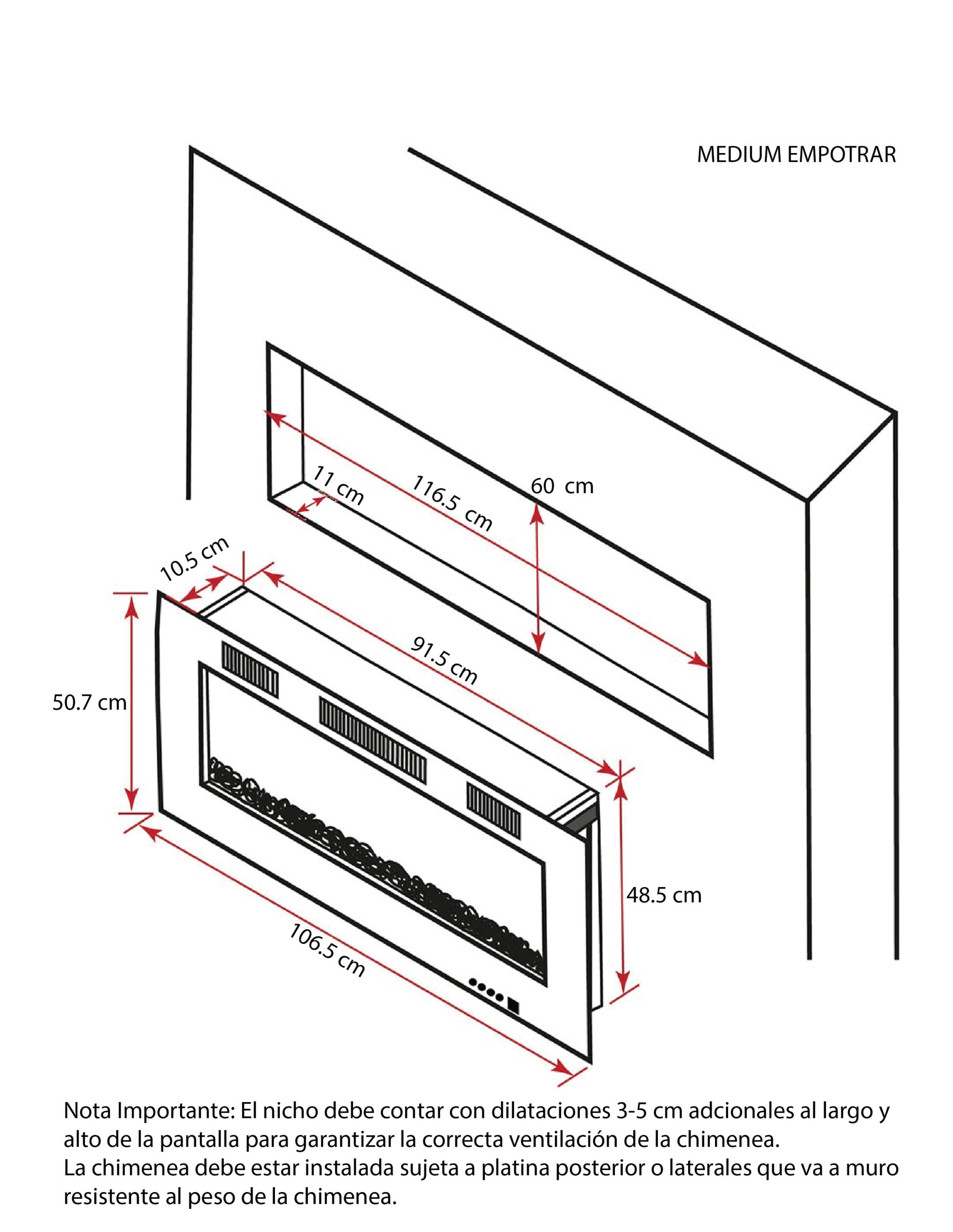 - Chimenea eléctrica ideal para colgar o empotrar (el calor de su sistema sale por el frente lo que permite una rápida , eficiente y segura irradiación del calor cuando se empotra en las paredes)
