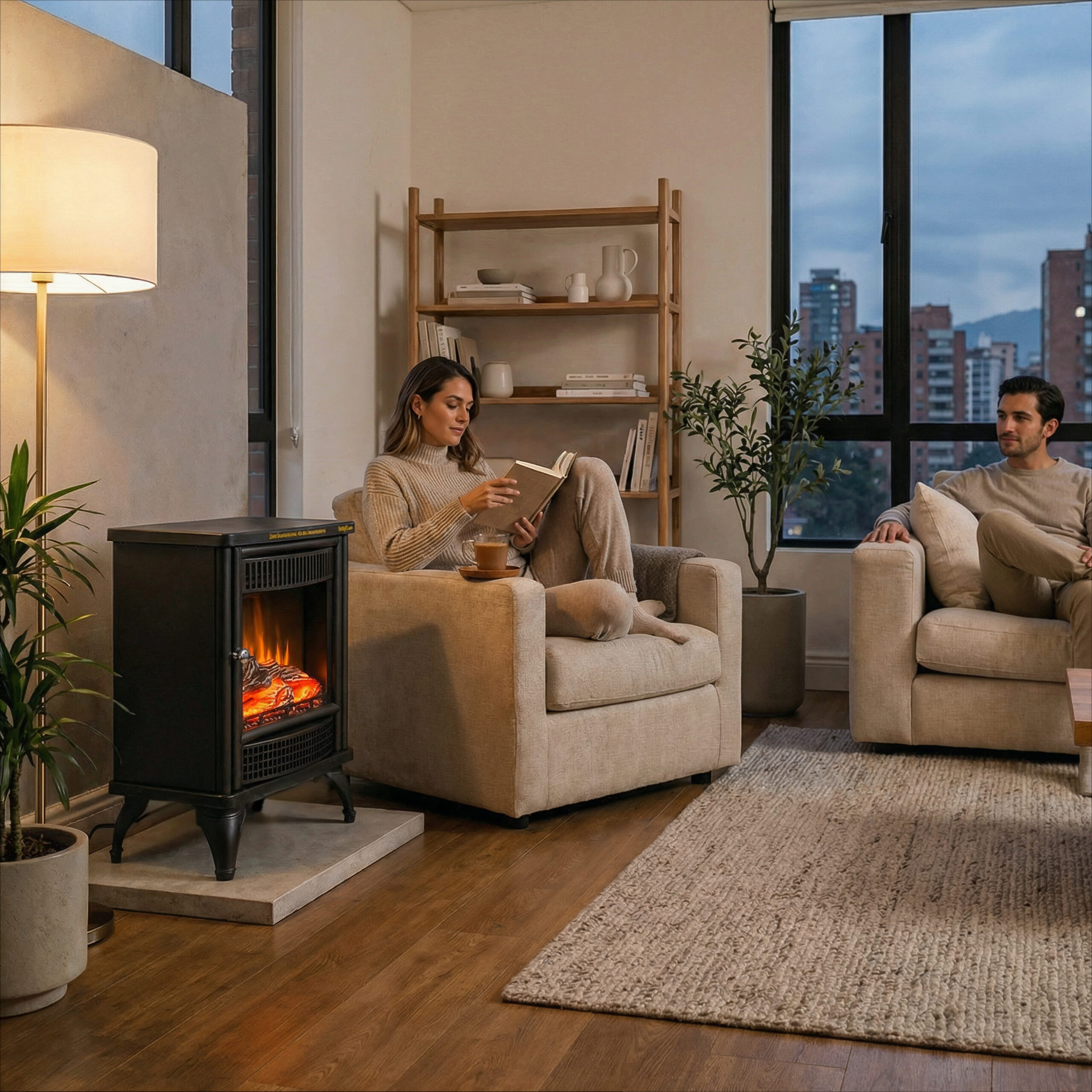 Chimenea Eléctrica que atrae por su diseño clásico y tradicional. Lista para ubicar en cualquier ambiente de manera fácil, provee un efecto de realismo de la llama único y natural. Ideal para aquellos que quieran un punto focal con calefacción visualmente agradable en una habitación sin necesidad de ventilación.