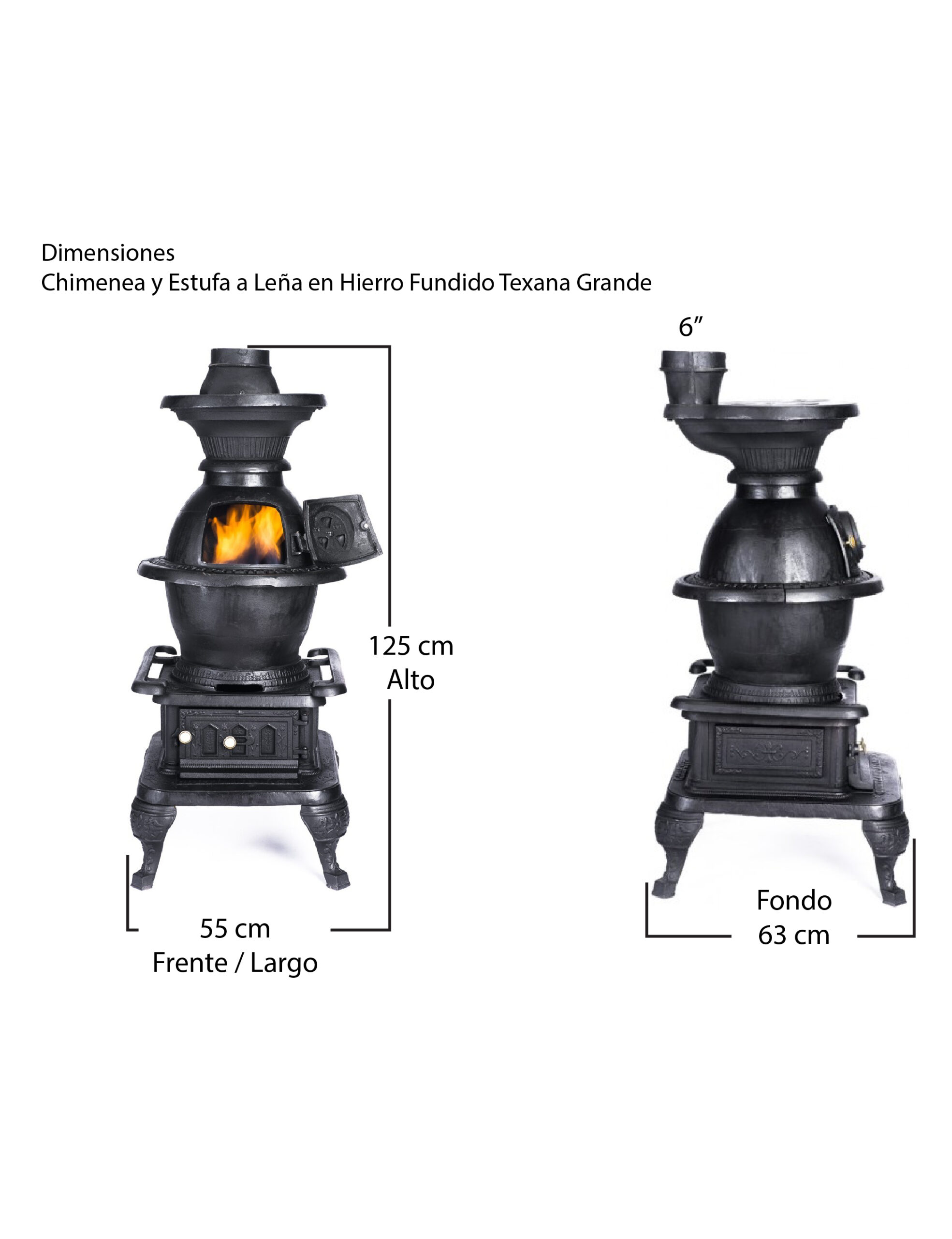 Chimenea y Estufa a Leña en Hierro Fundido Texana Grande