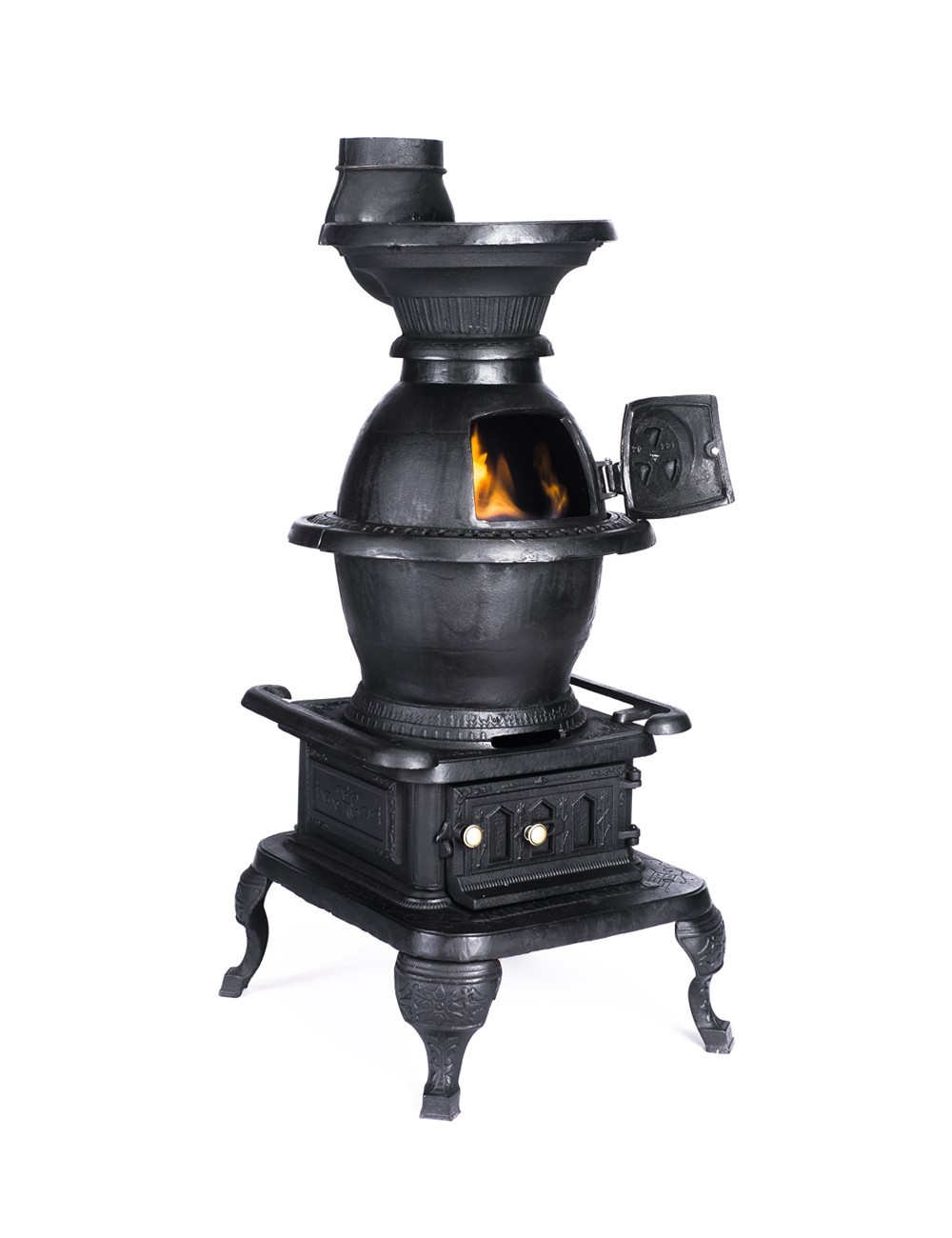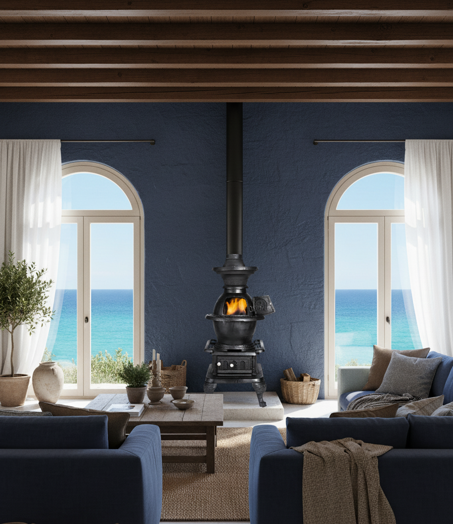 Magnifica e imponente se alza esta pieza única, inspirada en las antiguas estufas del norte Texas en Estados Unidos. Su forma vertical estilizada con detalles clásicos dará un encanto inimaginable al interior de tu hogar a la vez que brindará una calefacción ideal para espacios grandes y por supuesto no se no se puede olvidar la potente estufa superior para cocinar recetas de antaño.
